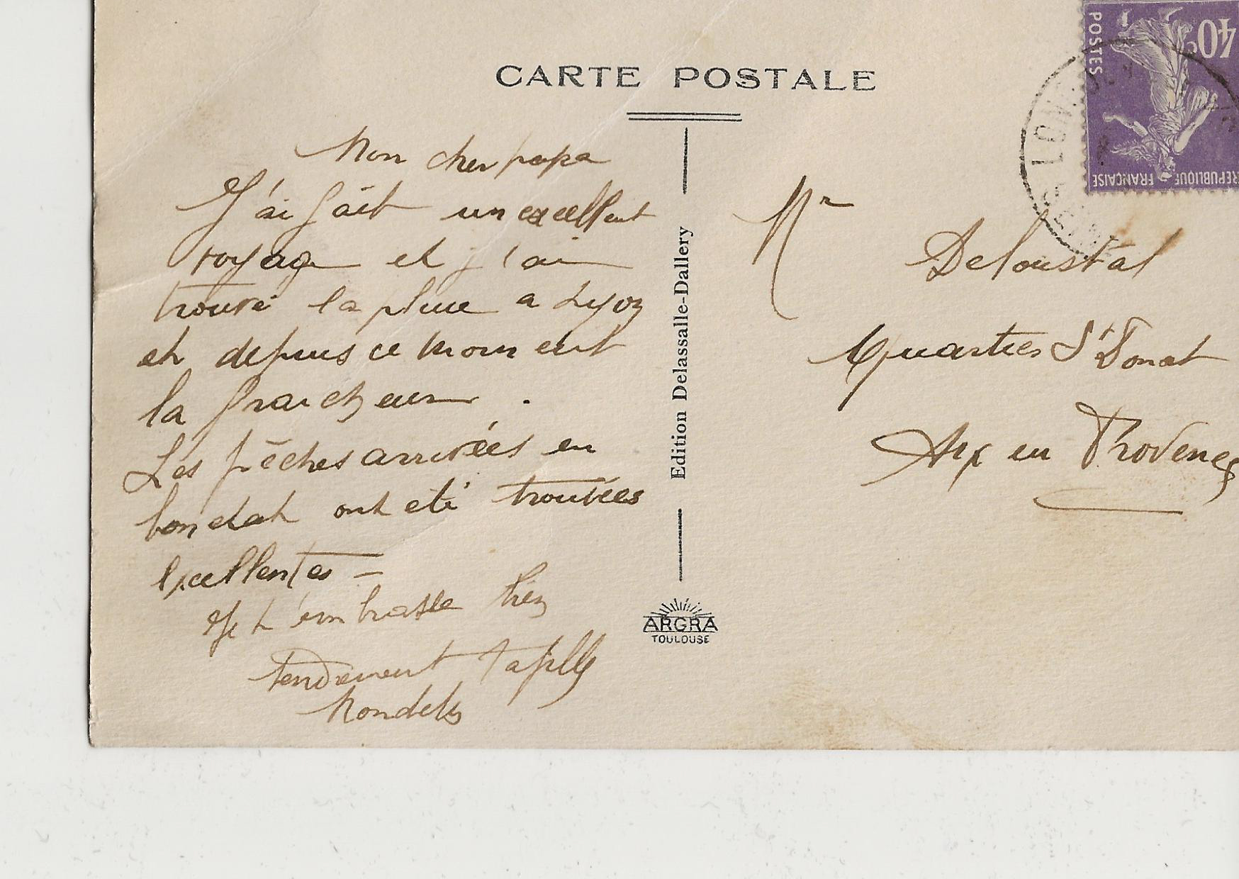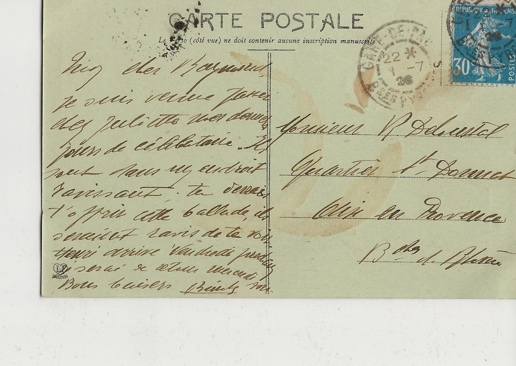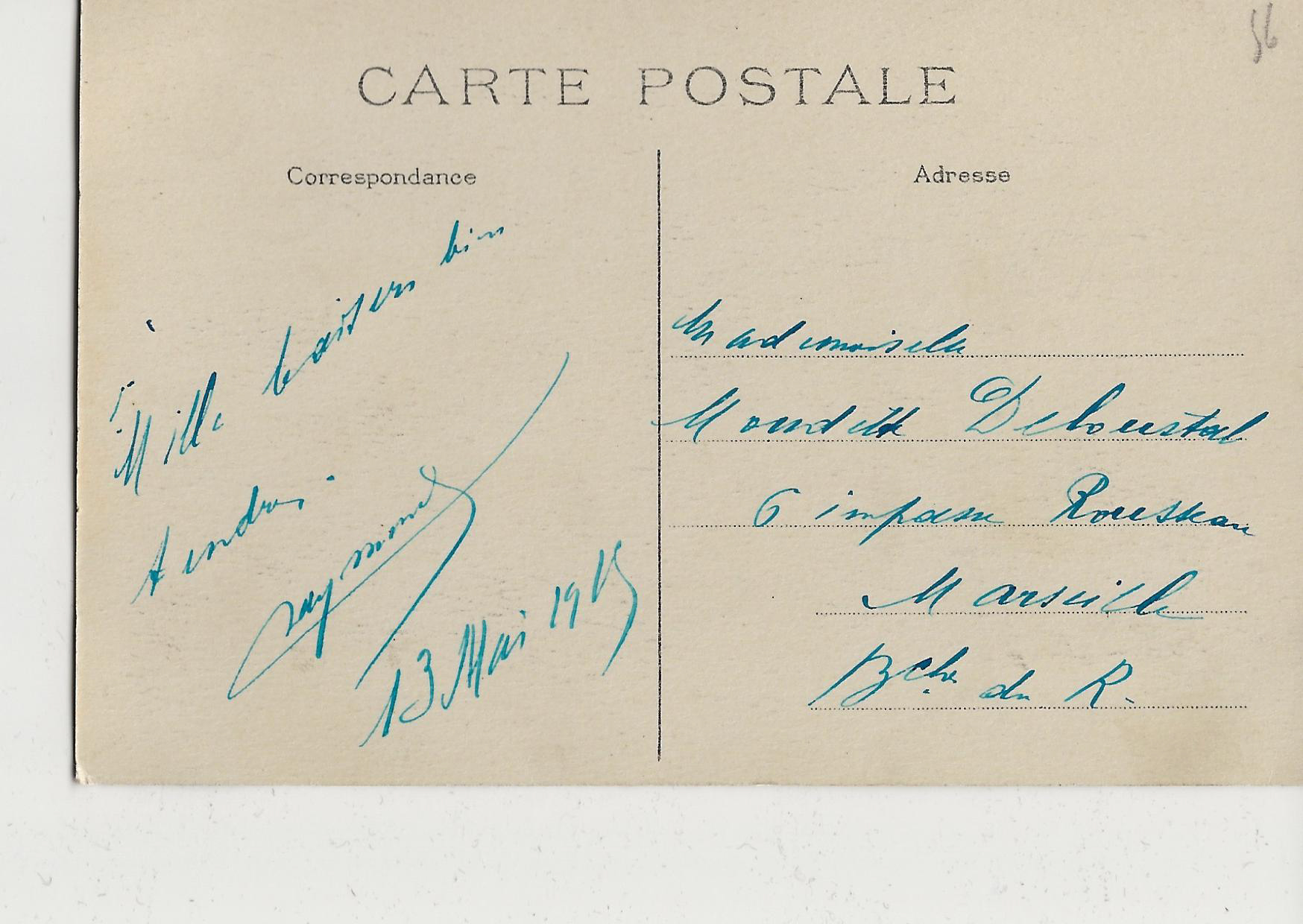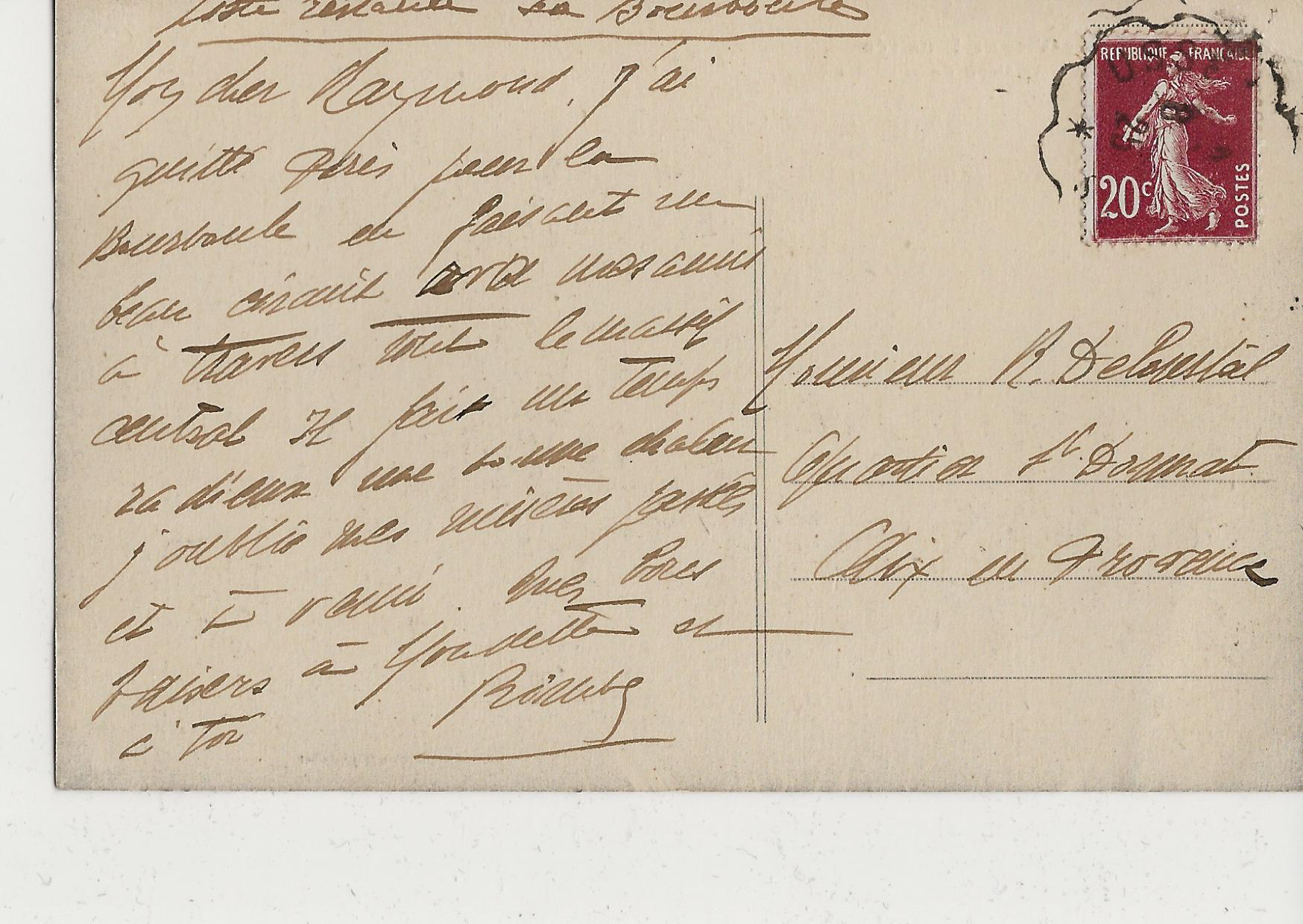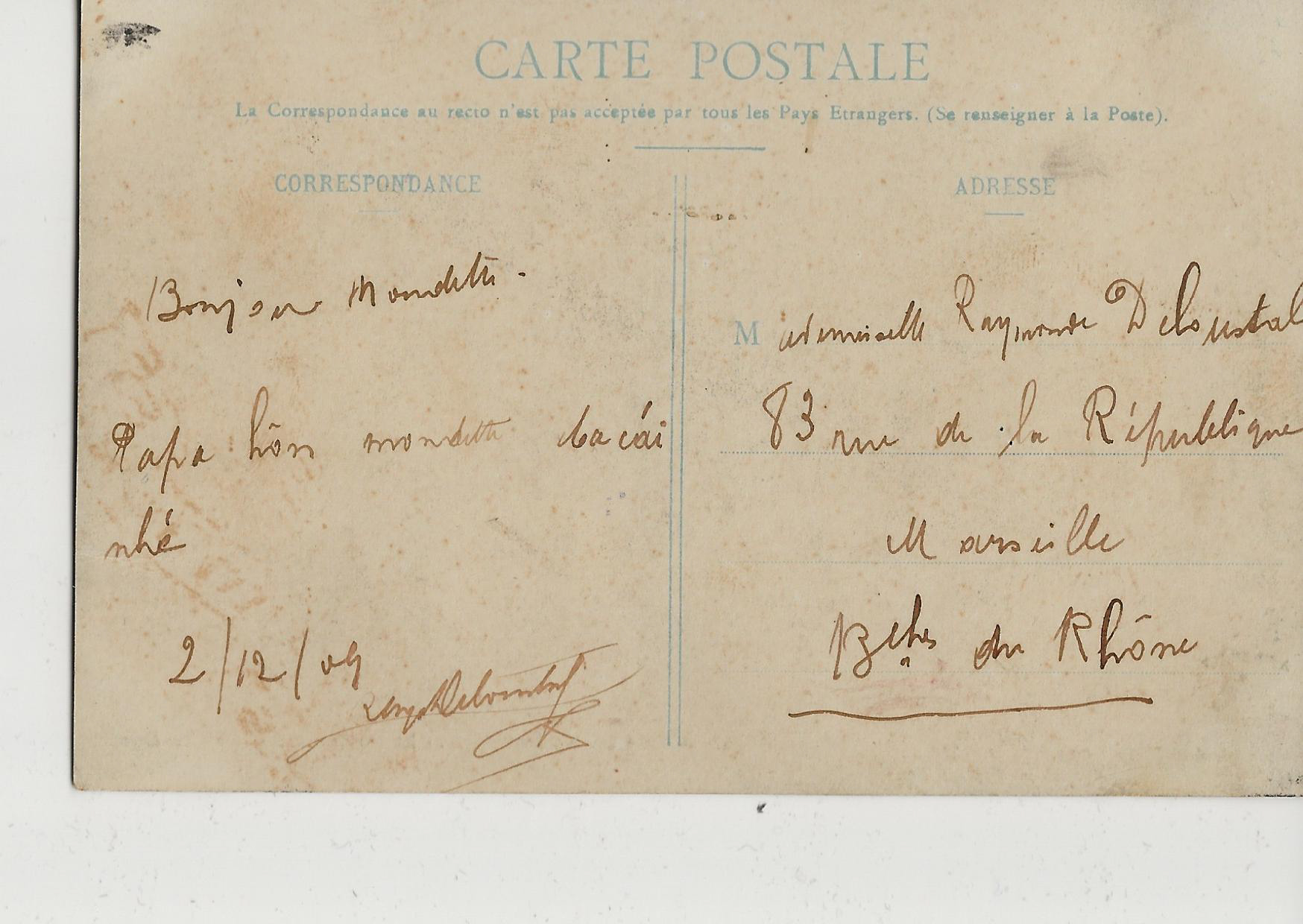 Il s’agit peut-être de la même signature que sur la carte précédente. Juliette sœur de Raymond est mariée à Marc Forsans, famille des