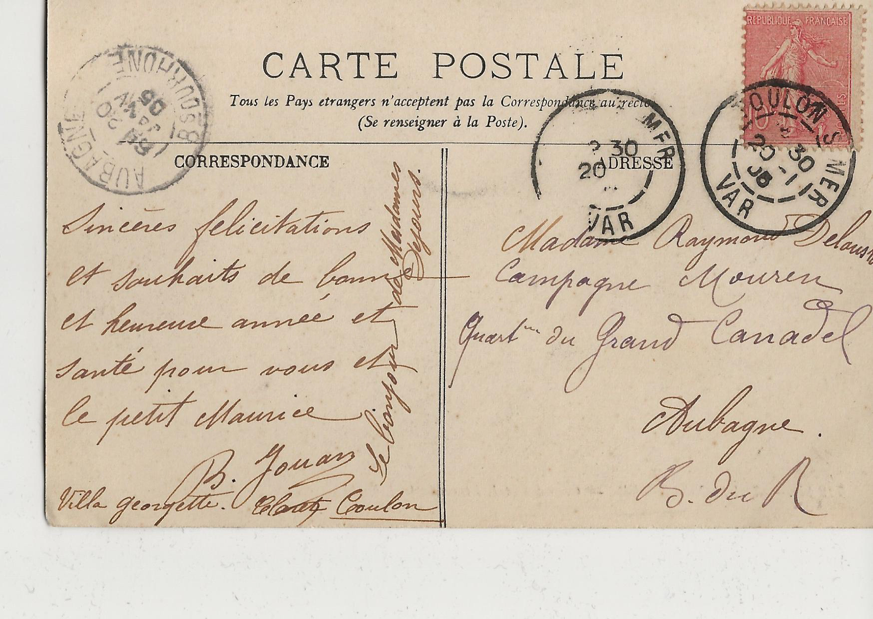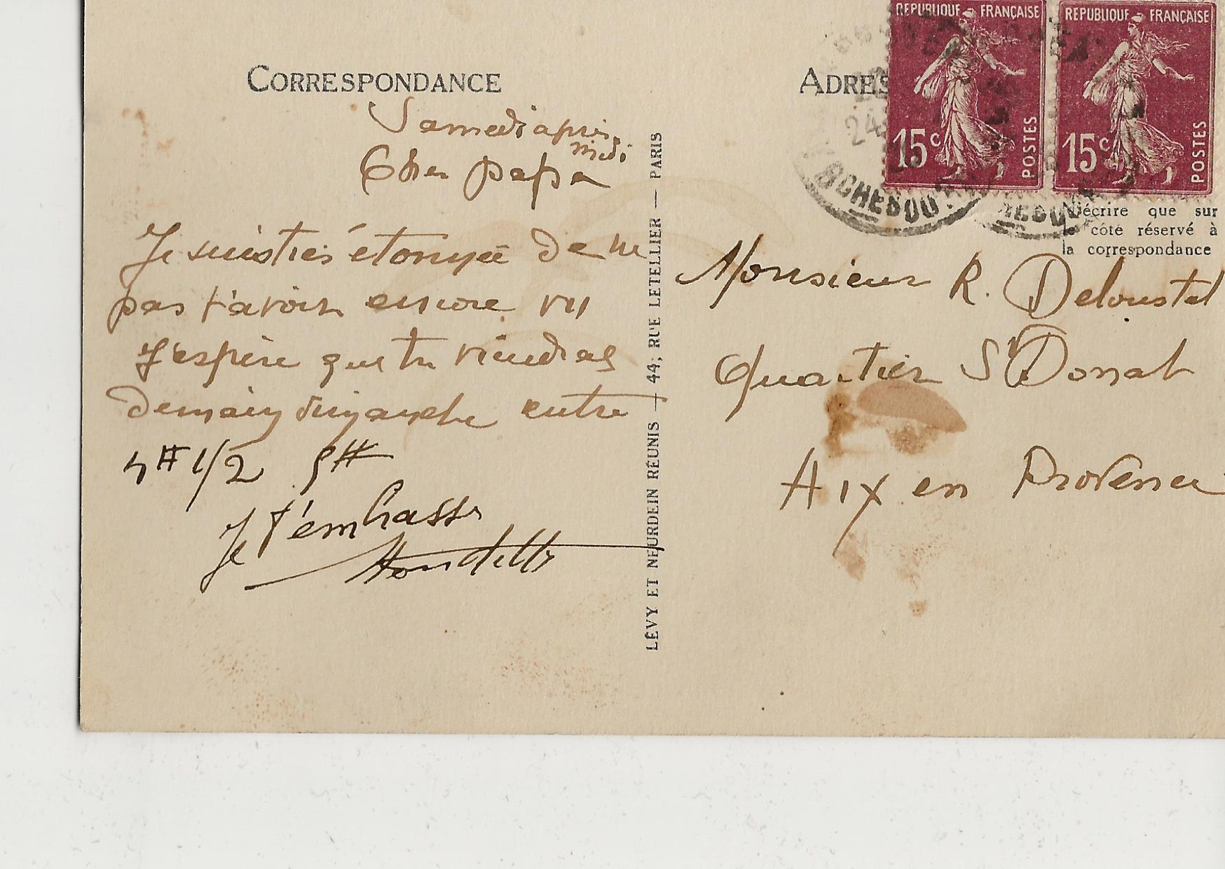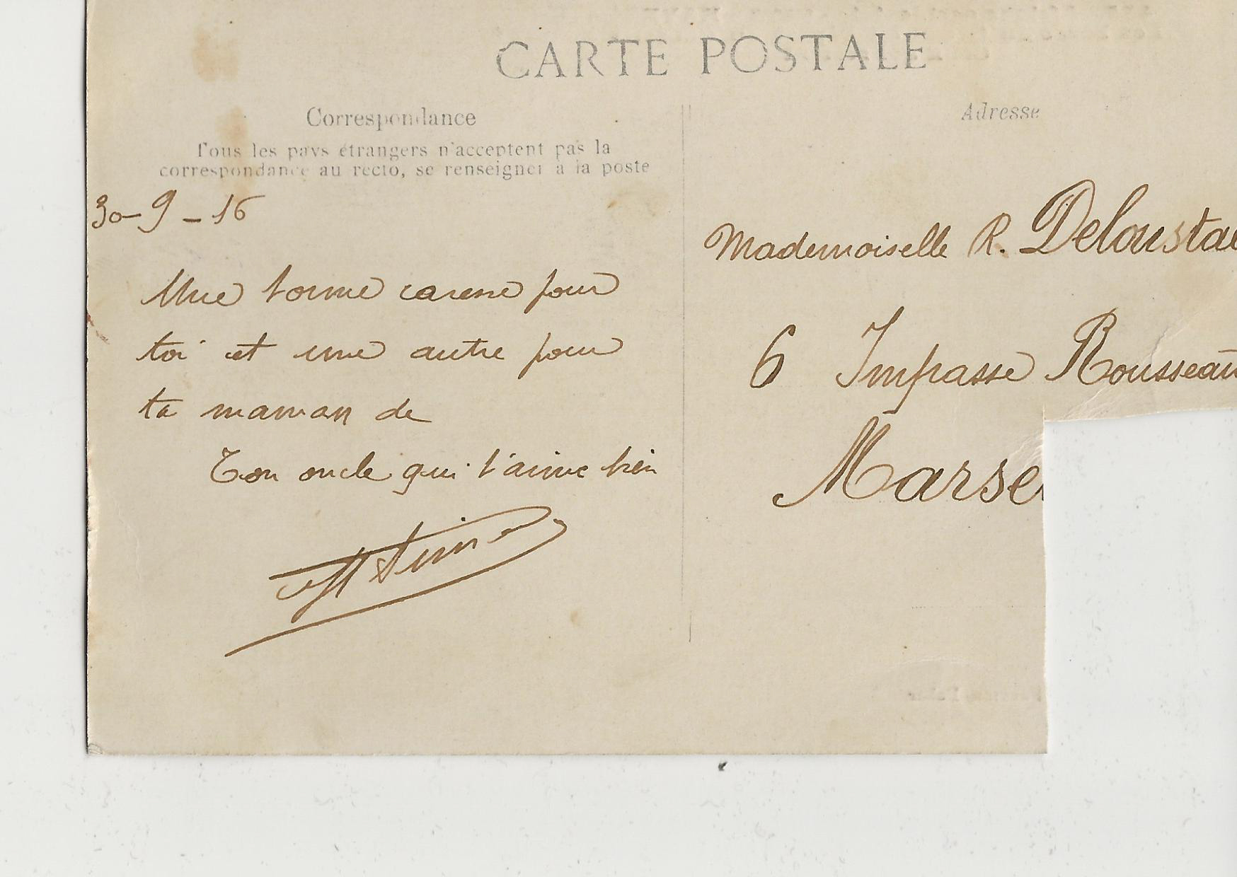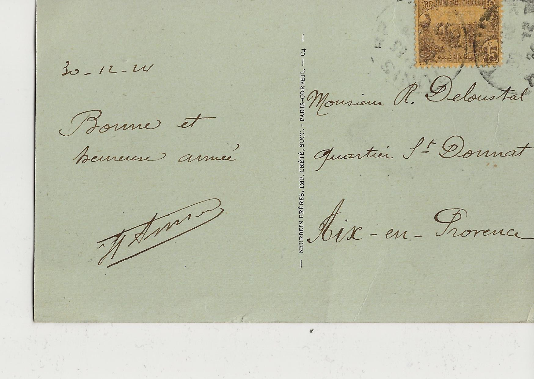 Il s’agit peut-être de la même signature que sur la carte précédente. Juliette sœur de Raymond est mariée à Marc Forsans, famille des