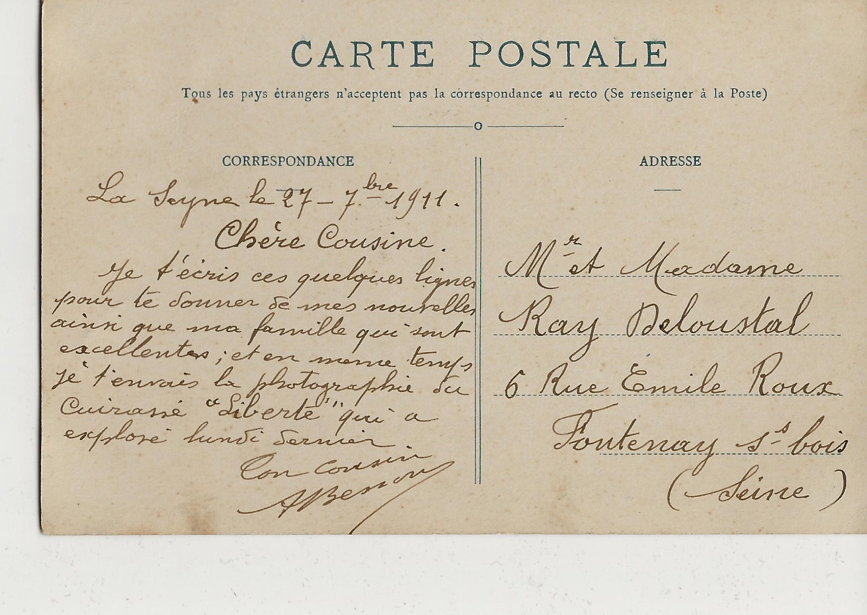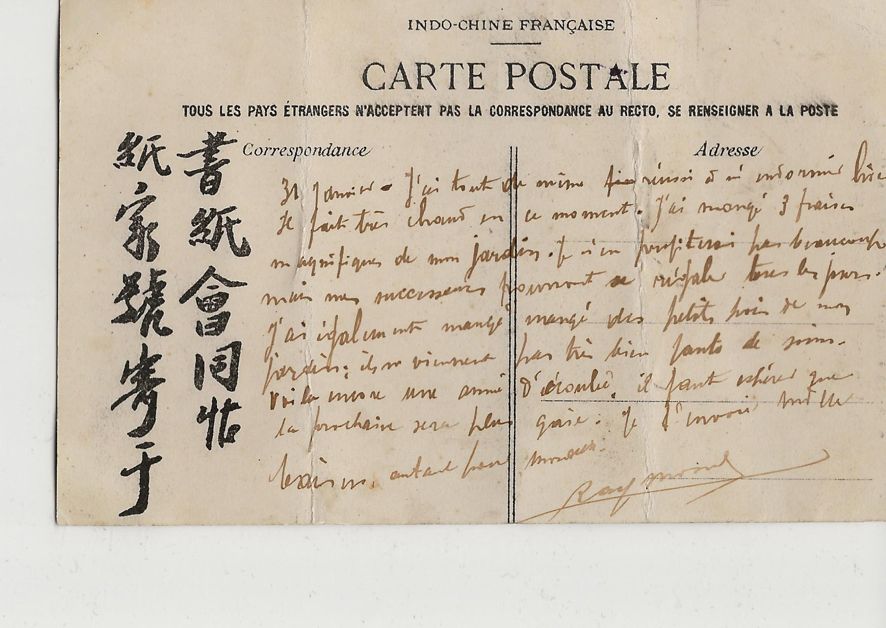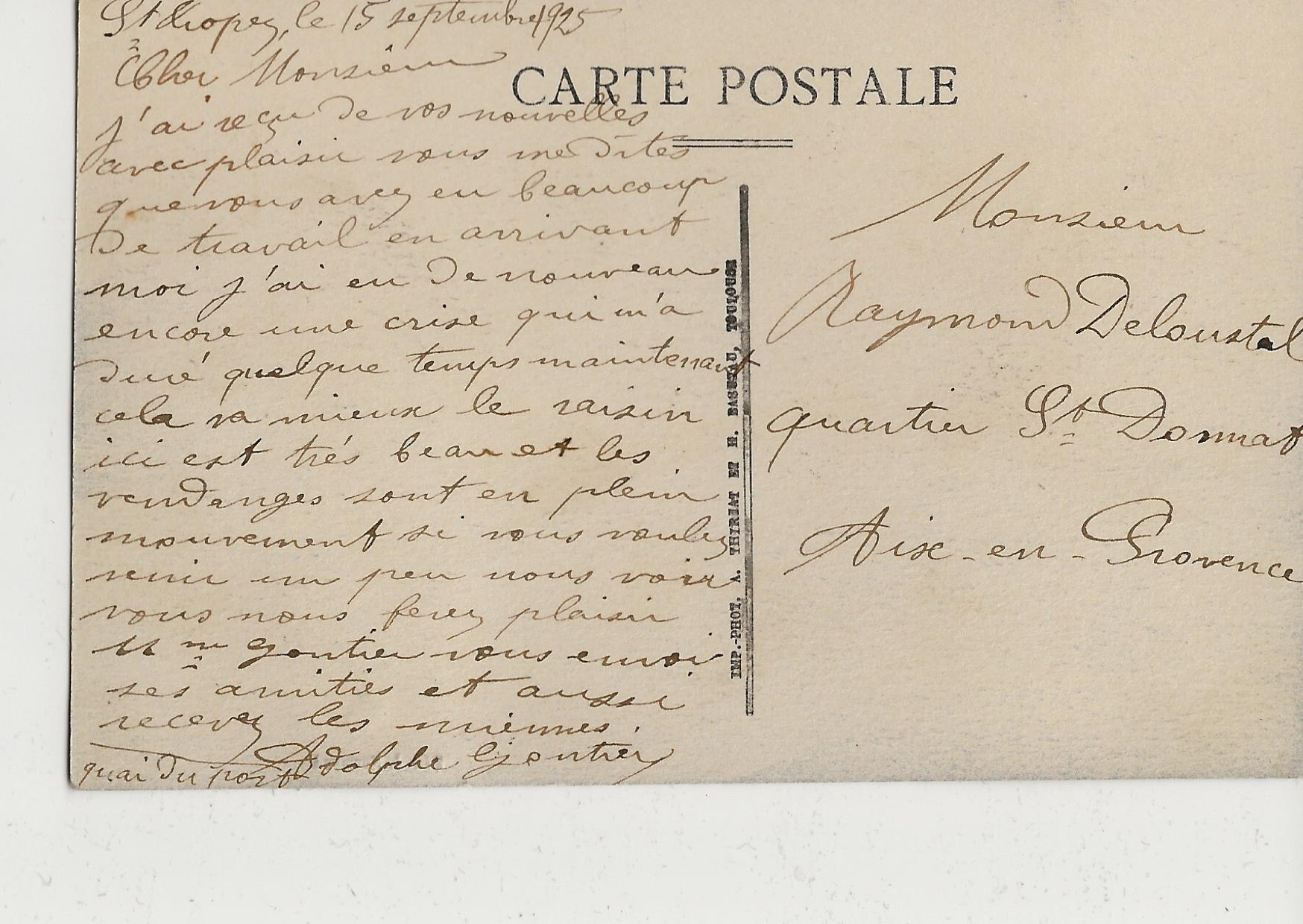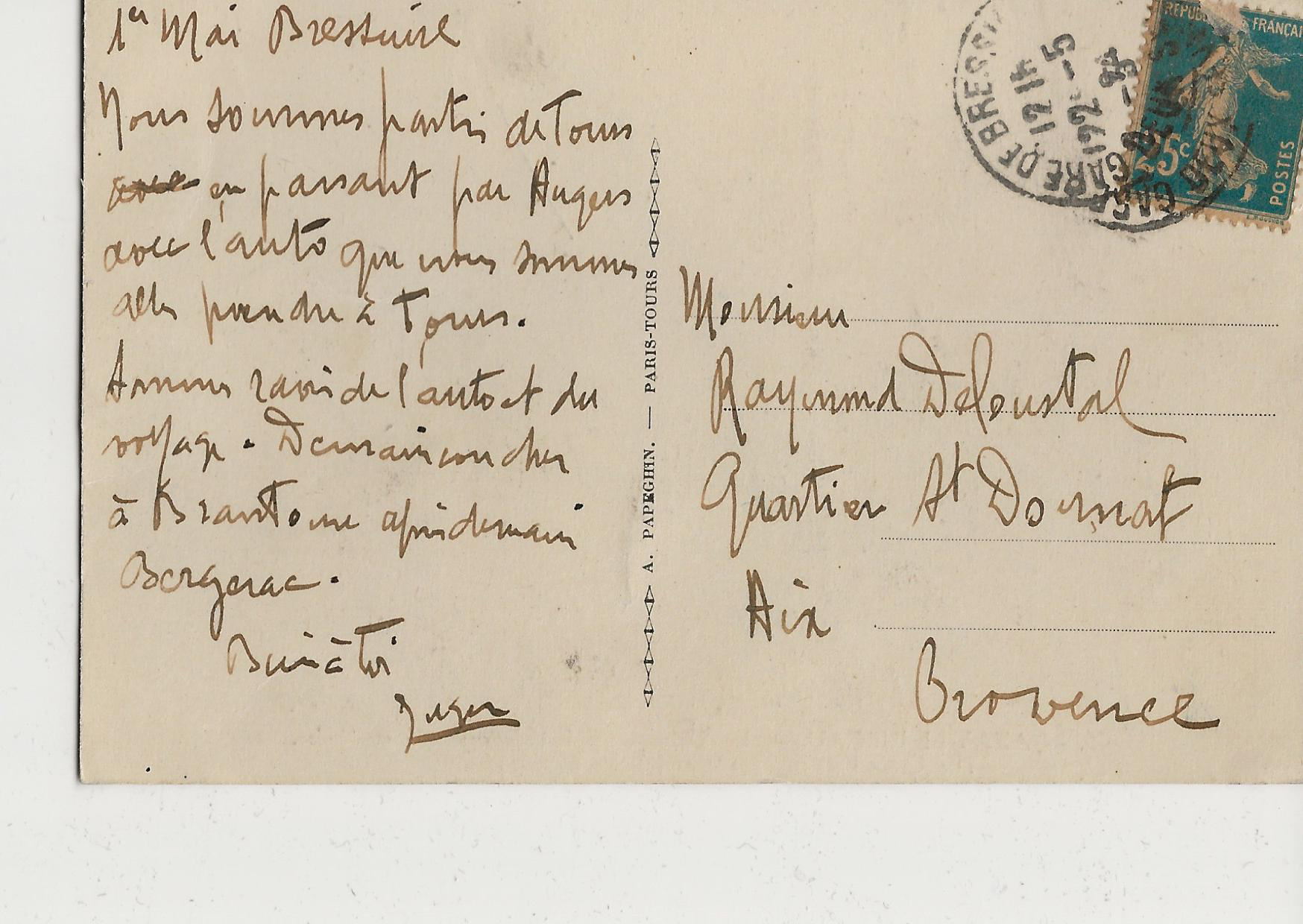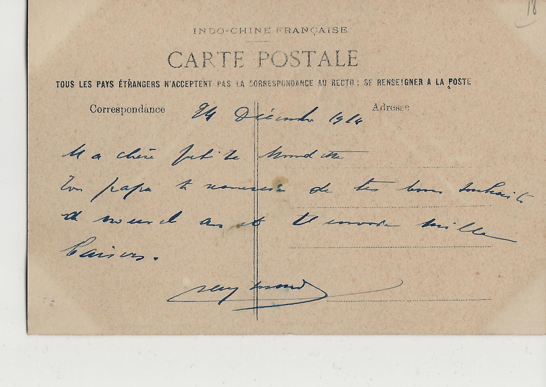 Il s’agit peut-être de la même signature que sur la carte précédente. Juliette sœur de Raymond est mariée à Marc Forsans, famille des