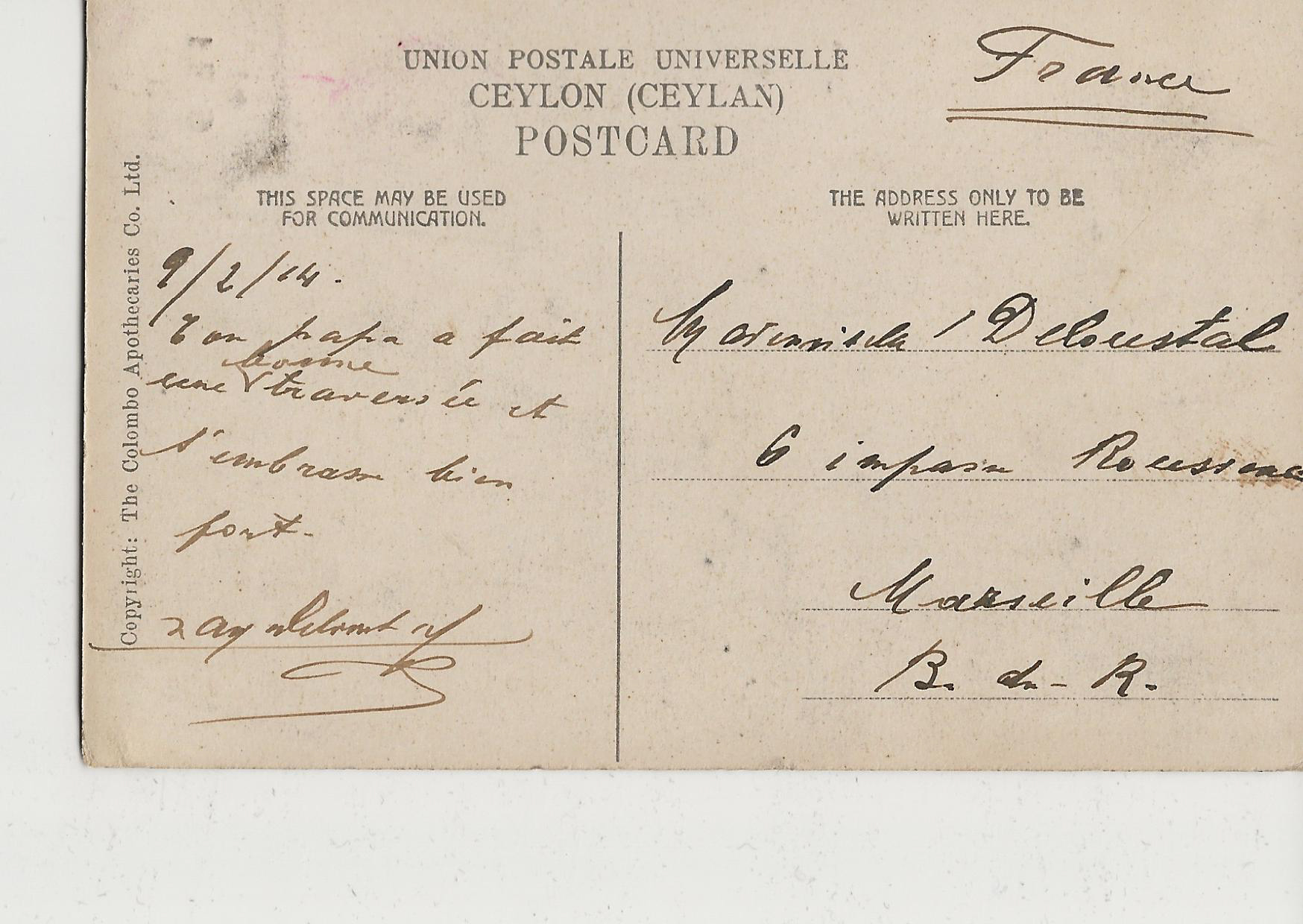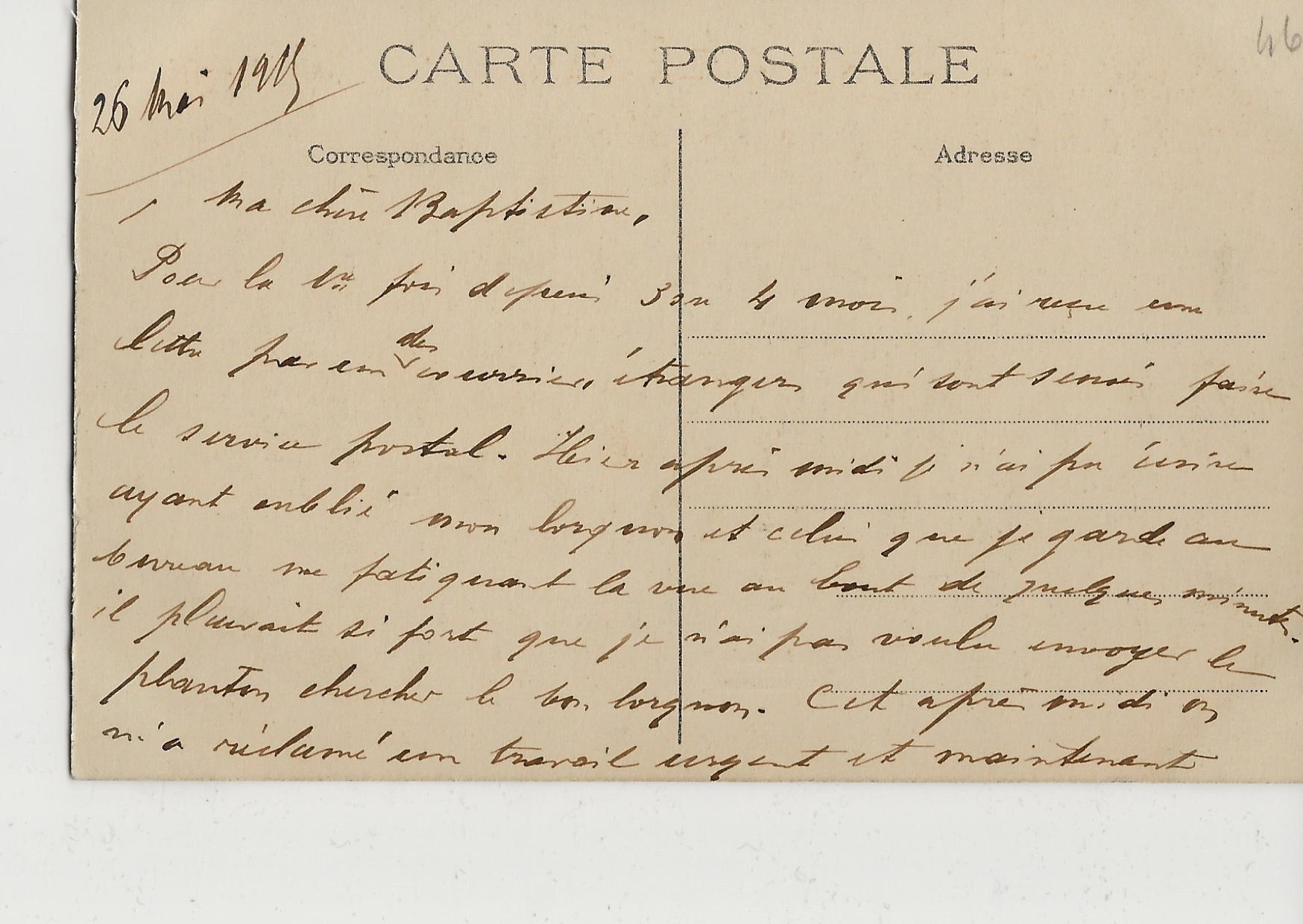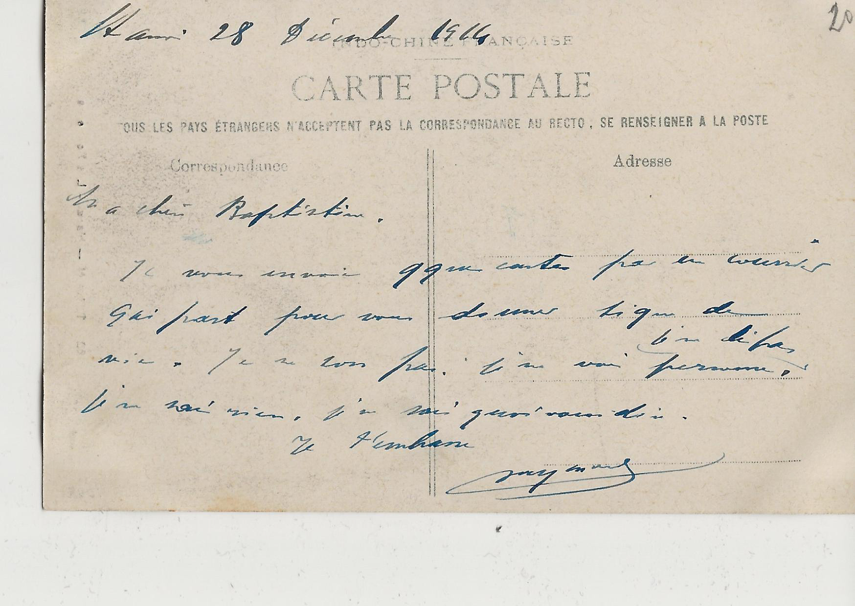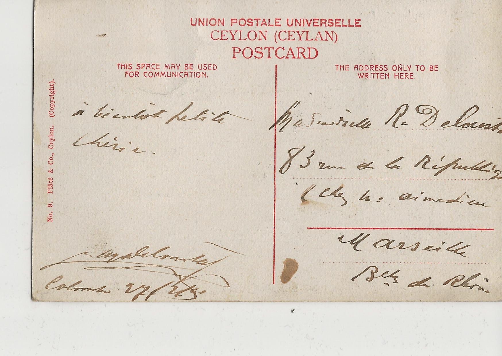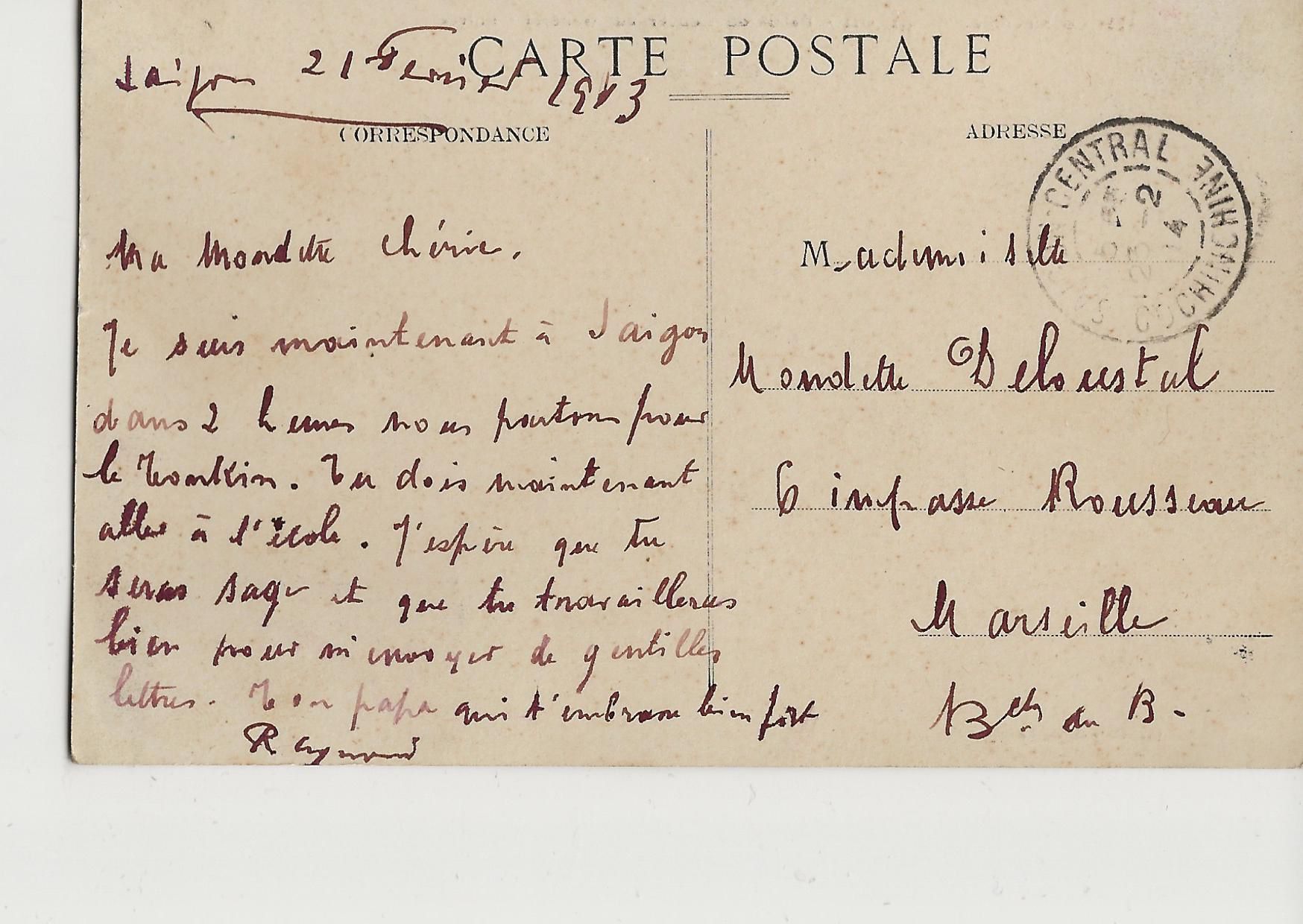 Il s’agit peut-être de la même signature que sur la carte précédente. Juliette sœur de Raymond est mariée à Marc Forsans, famille des