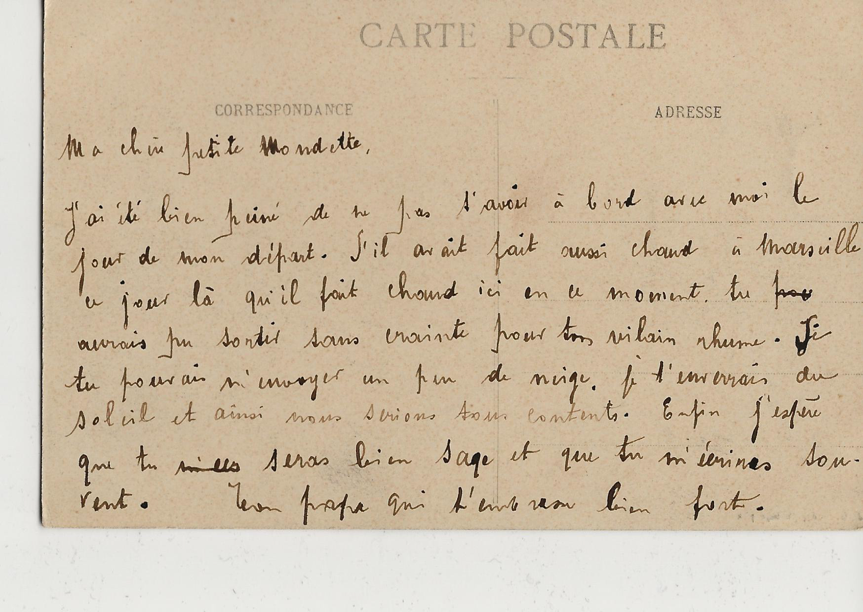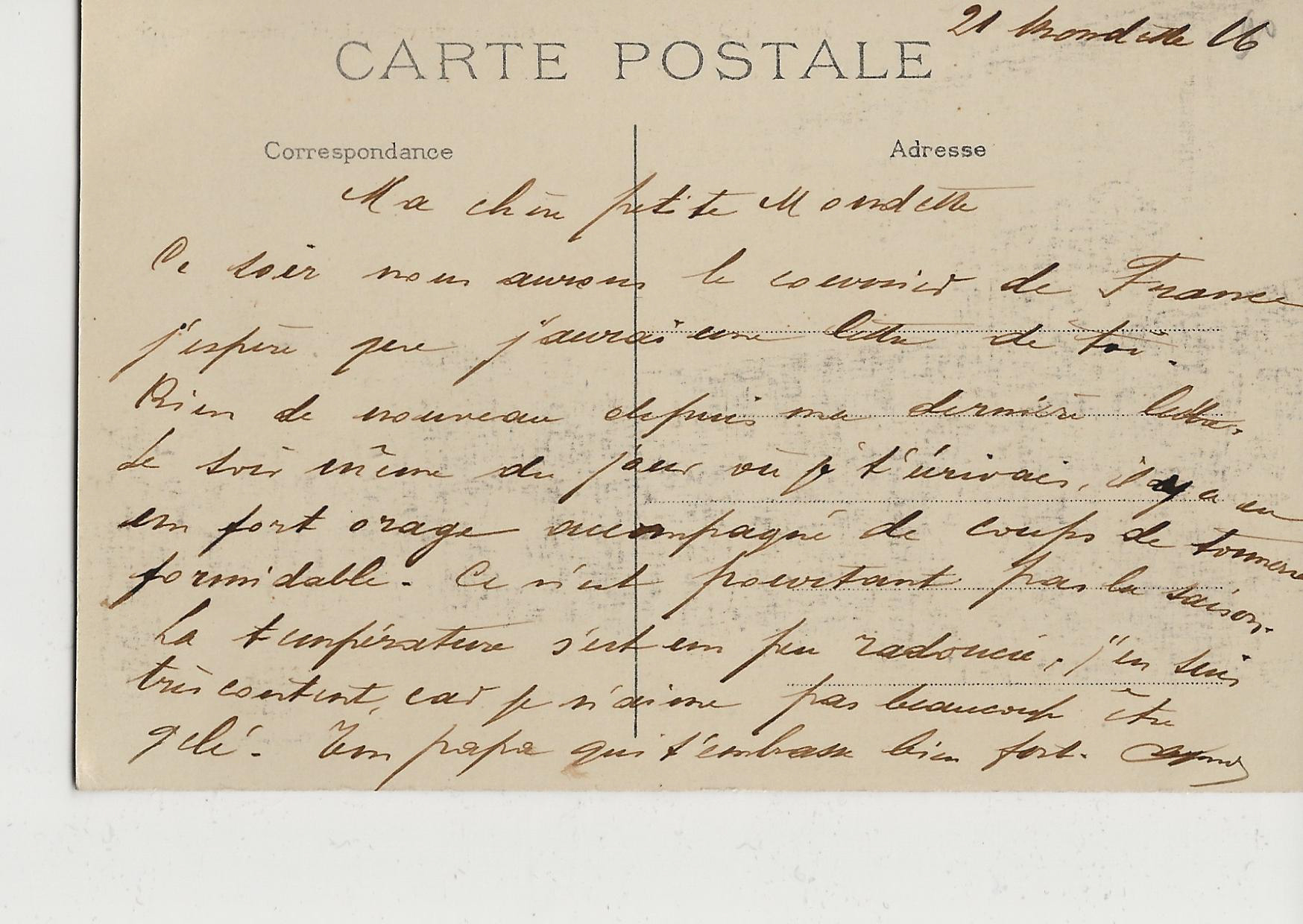 je t’embrasse bien tendrement Mondette ». Adressé à Monsieur