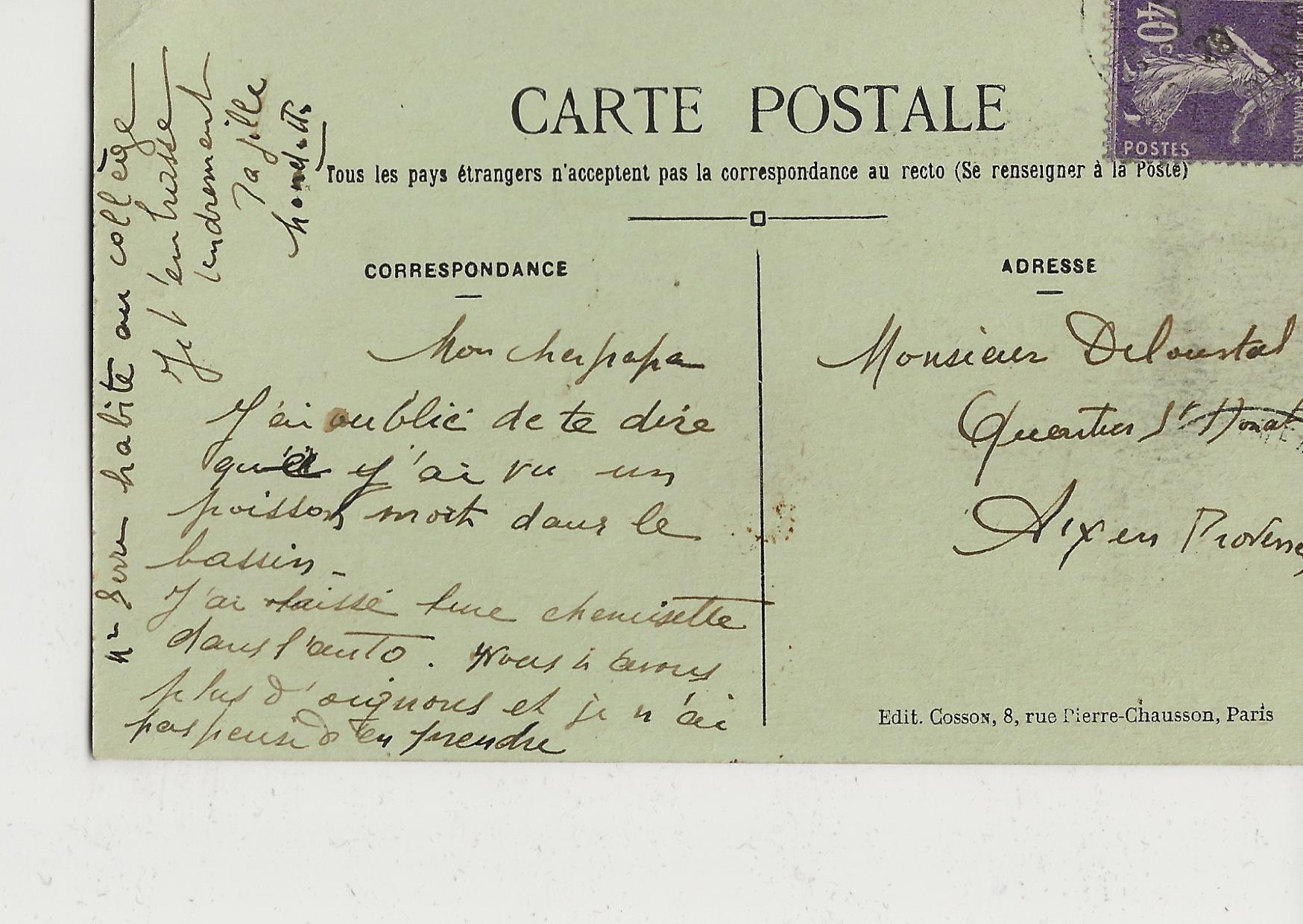la date non plus… « mon cher papa j’ai vu un poisson mort